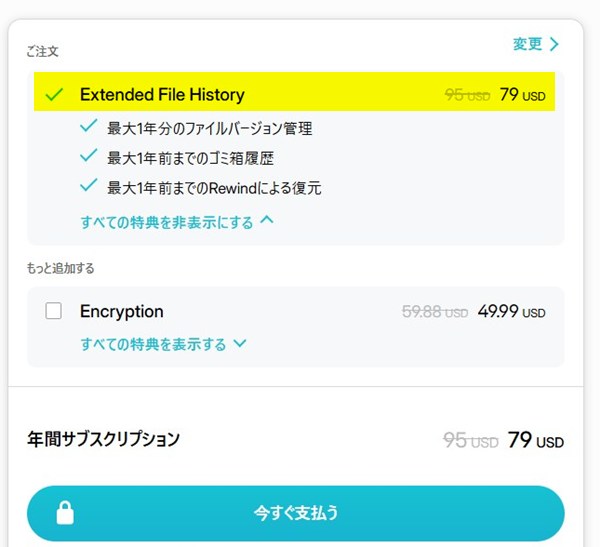pCloud「Extended File History」の料金