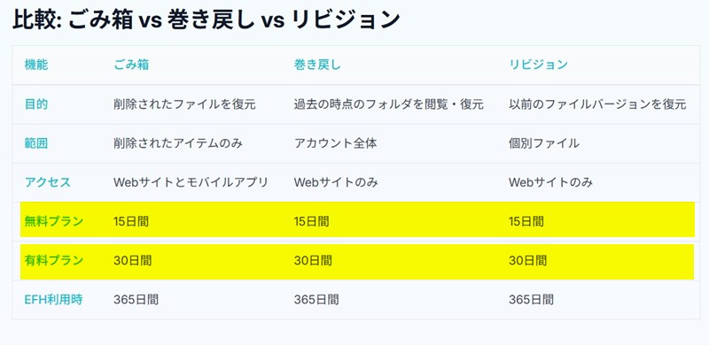 pCloud 過去データへの復元可能期間